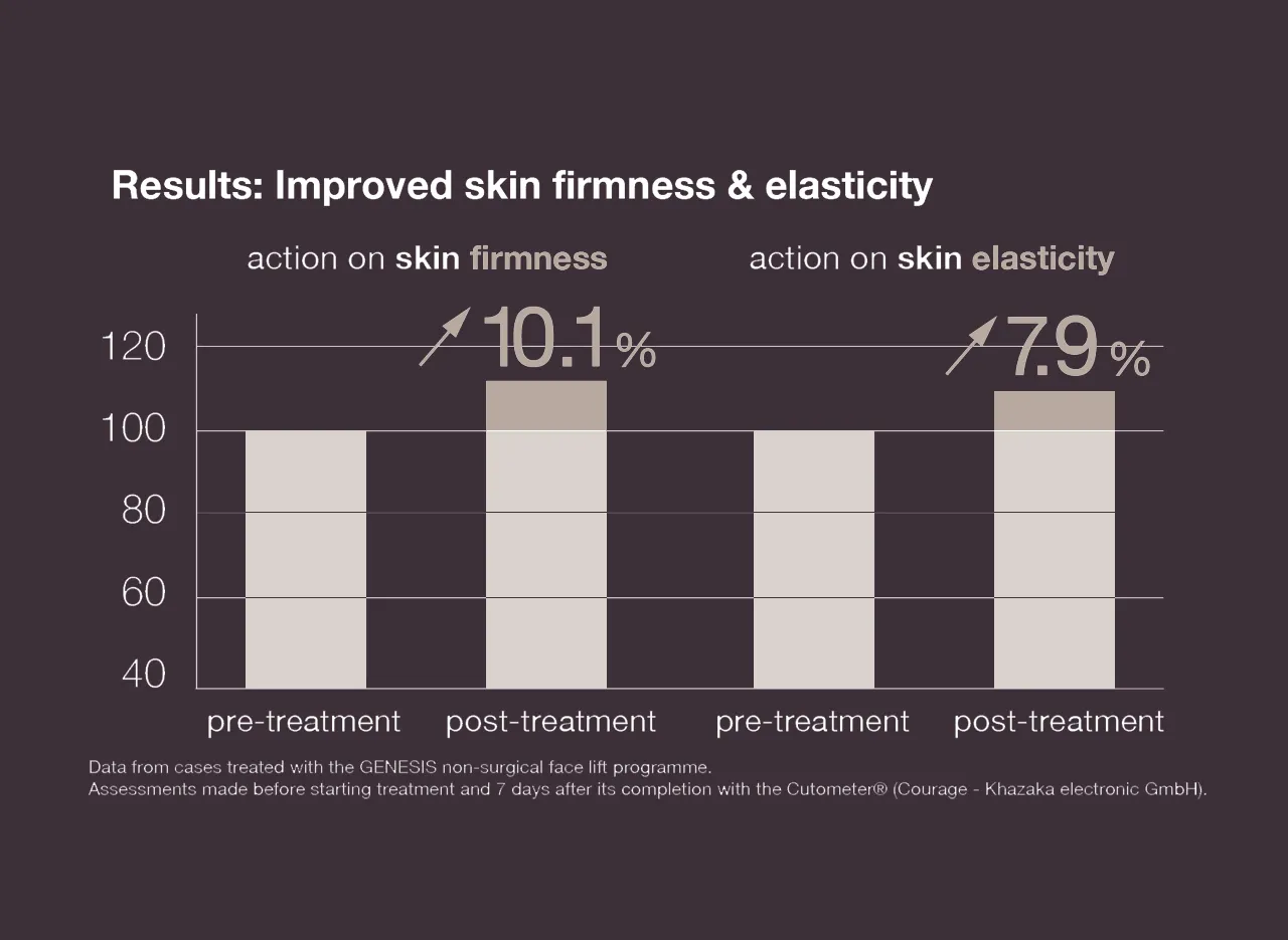 Genesis heeft een bewezen wetenschappelijke werking voor versteviging, afslanking en verjonging van de huid, dankzij naaldloze mesotherapie. Ideaal voor klanten die een natuurlijke facelift willen voor een frisse en jeugdige uitstraling.